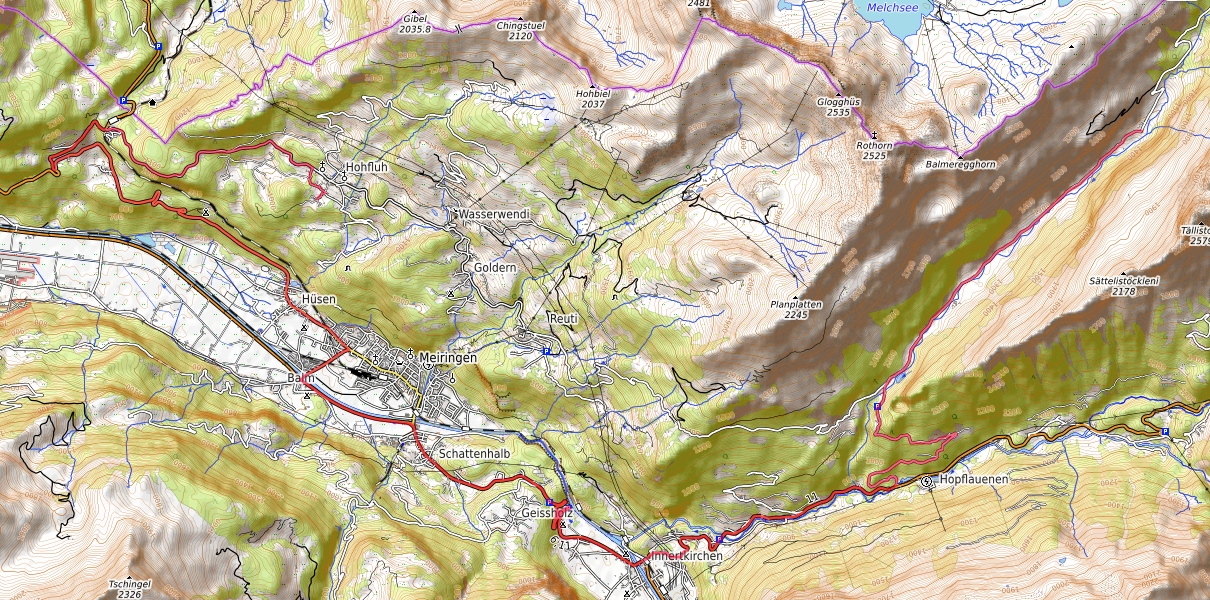 Übrigens wird Meiringen im Hasliberg / Haslital als Fünfstern bezeichnet für die Fahrtrichtungen: Brienzer See, Grosse Scheidegg, Grimselpass, Sustenpass und das Gental mit dem Jochpass nach Engelberg. In Engstlenalp ist aber Schluss und Sackgasse mit der PKW-Tour. Der Jochpass ist sommersüber nur als Wanderer zu erreichen.