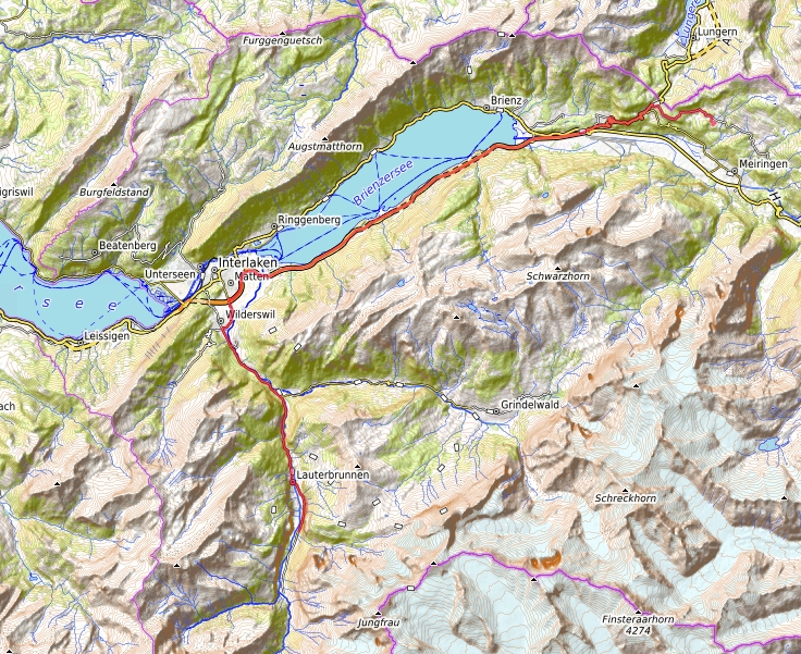Mit dem PKW kommt man von unserem Hotel Bellevue Hohfluh Hasliberg über den Brünigpass in Richtung Interlaken auf der A8. Kurz nach der Ausfahrt Interlaken Ost geht es weg von der Autobahn bei der Ausfahrt "Wilderswil" in Richtung "Lauterbrunnen". In "Zweilütschinen" trennt man sich von der Route nach Grindelwald und fährt nach Lauterbrunnen hinein. Unser Weg fährt mitten durch die Innenstadt. Es geht immer weiter die Hauptstrasse entlang und hält dann einige Kilometer entfernt bei der Postbushaltestelle "Trümmelbachwasserfälle" auf einem schattigen Parkplatz. Die Weg-Länge beträgt 43,5 km einfach von unserem Hotel aus.
