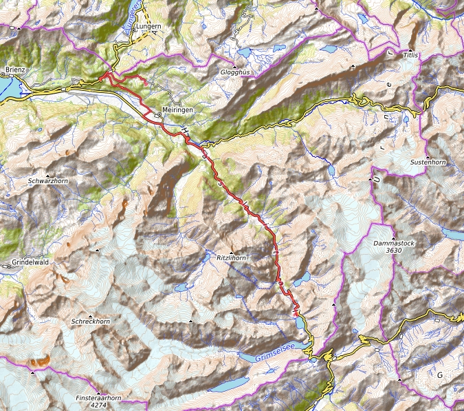 Die Fahrt mit dem PKW (Weg-Länge 37,5 km einfach) führt von unserem Hotel Bellevue Hohfluh Hasliberg über Meiringen, Innertkirchen, Guttannen, Hotel Handegg bis knapp vor dem Räterichsbodensee nach rechts in den Abzweig KWO Gerstenegg. In Google Maps läuft dieser Treffpunkt als "Treffpunkt Gerstenegg, Grimselstrasse, Guttannen, Schweiz". Die Fahrt endet in einem Parkplatz vor der Staumauer. Hier geht man in einen kleinen Vortragsraum, in dem die Führung beginnt. Mit einem kleinen Bus fährt man dann in die unterirdischen Kraftwerksanlagen hinein. Beim Rückweg durch die Stollengänge besucht man dann noch die bei den Bauarbeiten angeschnittene Kristallkluft Gerstenegg.
