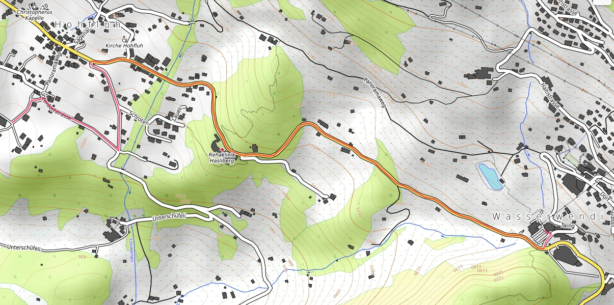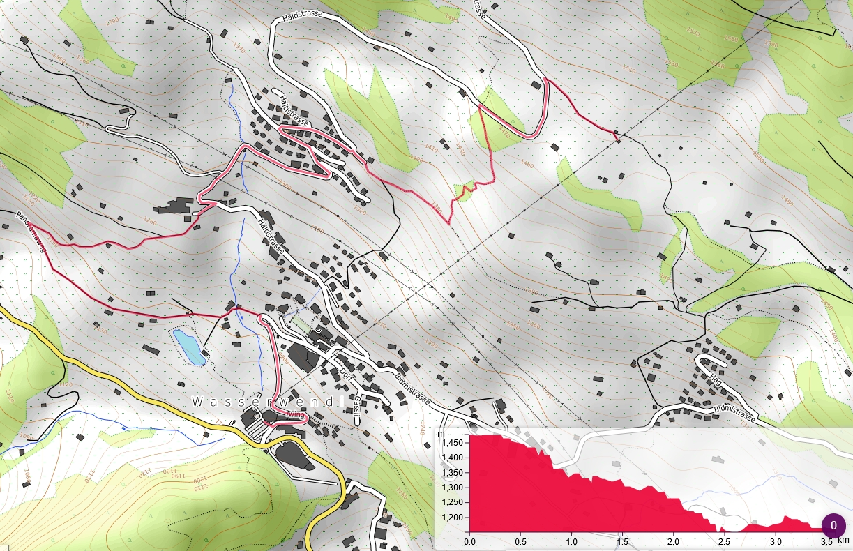 Mit dem PKW fährt man auf der Strasse von unserem Hotel Bellevue Hohfluh Hasliberg nach Twing bei Wasserwendi und Goldern zur Gondelbahn. Die offizielle Homepage dieser Bergbahnen gibt es hier. Die Weg-Länge beträgt 2,6 km. Auf dieser Bahn fährt man bis zur Zwischenstation "Lischen". Die Wanderung führt uns über Wasserwendi und einem hübschen Badesees zurück nach Twing. Eine nette kleine Wanderung von 3,6 km zum Nachmittag.